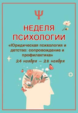 С 24 по 28 ноября 2025 года в нашем лицее пройдёт XXI областная Неделя психологии: «Юридическая психология и детство: сопровождение и профилактика».